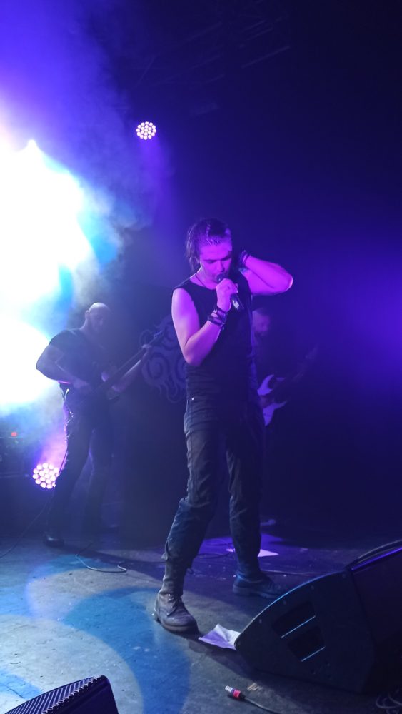 In consequence, in front of the venue and in the bar space, things were going usual ways. People were chatting, discussing the perfomances, having drinks or smoking cigarettes. But in the hall, the situation was strangely different from other concerts I had witnessed there before. The audience was about 200 local metalheads, half the size of ‘normal’ shows. So it was less crowded. In the audience space, the masks had to be worn and people were required to keep a safety distance from each other. Both worked quite well. The odd amospheric effect was that the masks – even more than usually – anonymized the fans. They became ‘faceless’.1